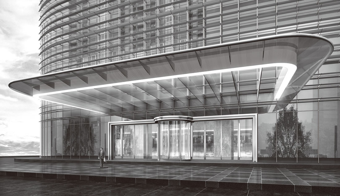 门老爷和艾德里安•史密斯先生在门面建筑整体方案设计及效果实施方面通力合作,双方面对面直接零距离交流沟通,经过手绘图—效果图—施工图在各个细节反复修改及确认成功延续了史密斯先生关于“超高层建筑要有文化味”以及“建筑的可持续发展”的设计理念,成就门面建筑艺术又—扛鼎力作。